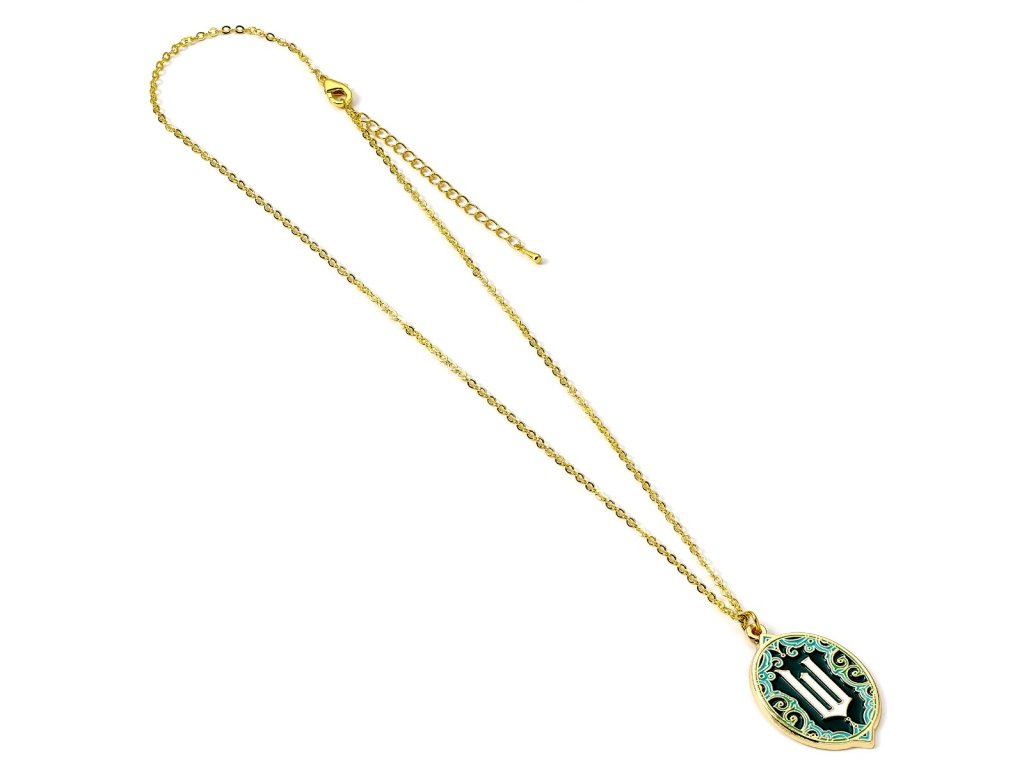Úžasný smaragdově zelený přívěsek. Náhrdelník je ozdoben zářivě zeleným smaltem, třpytivými krystaly a má zlatý řetízek s nastavitelnou délkou od 40 cm do 45 cm. Vhodný od 14 let.Doplňkové parametry