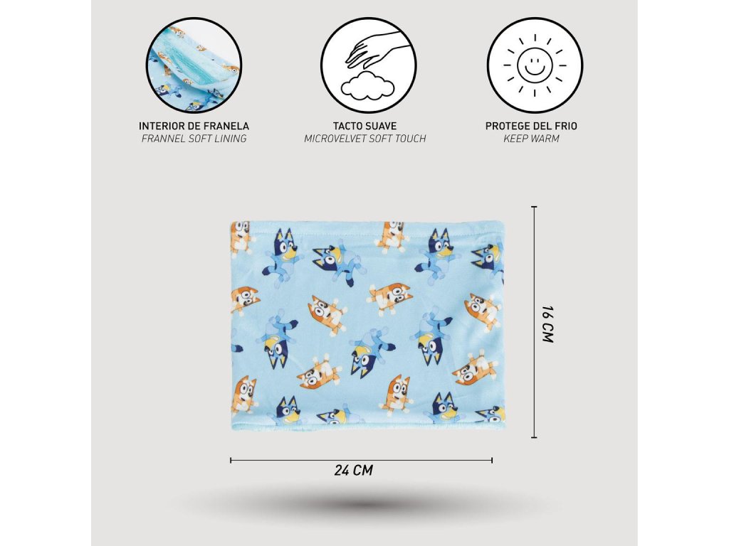 Dětský nákrčník-šála s motivem Bluey je ideální doplněk pro chladnější dny! Měkký a příjemný materiál skvěle chrání krček před větrem i chladem, zatímco barevný potisk s oblíbenou postavičkou Bluey potěší každé dítě. Díky univerzální velikosti se snadno přizpůsobí a skvěle zapadne jako praktická zimní výbava nebo stylový doplněk k outfitu.