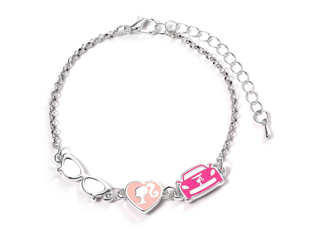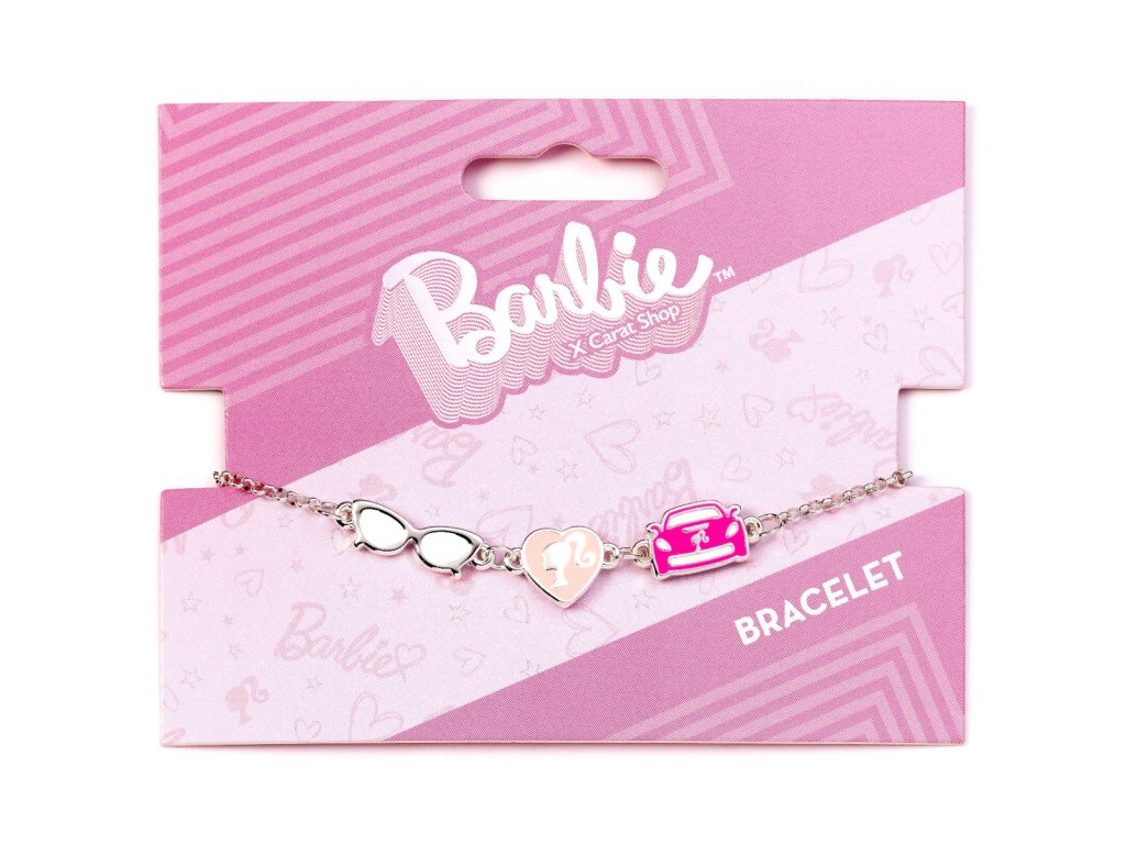 Náramek Barbie se třemi zábavnými přívěsky – siluetou Barbie v srdíčku, brýlemi a autem na jemném řetízku. Náramek má délku 17 cm s 5 cm prodlužovacím náramkem. Vhodný od 14 let.Buďte první, kdo napíše příspěvek k této položce.