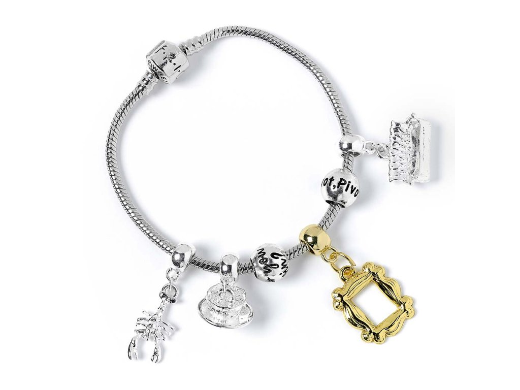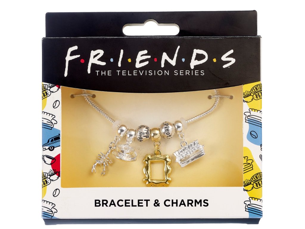 Ukažte svou lásku k seriálu Přátelé tímto náramkem s přívěsky, který obsahuje čtyři ikonické symboly z oblíbeného seriálu - humra, šálek kávy, rám a pohovku. Udržte své přívěsky bezpečně uchycené pomocí dvou roztomilých podložek a noste jej hrdě jako perfektní dárek pro každého fanouška seriálu Friends. Tento univerzální náramek padne na většinu zápěstí a je vhodný od 14 let. Tento náramek z licencované kolekce šperků je nutností pro každého opravdového fanouška.Buďte první, kdo napíše příspěvek k této položce.