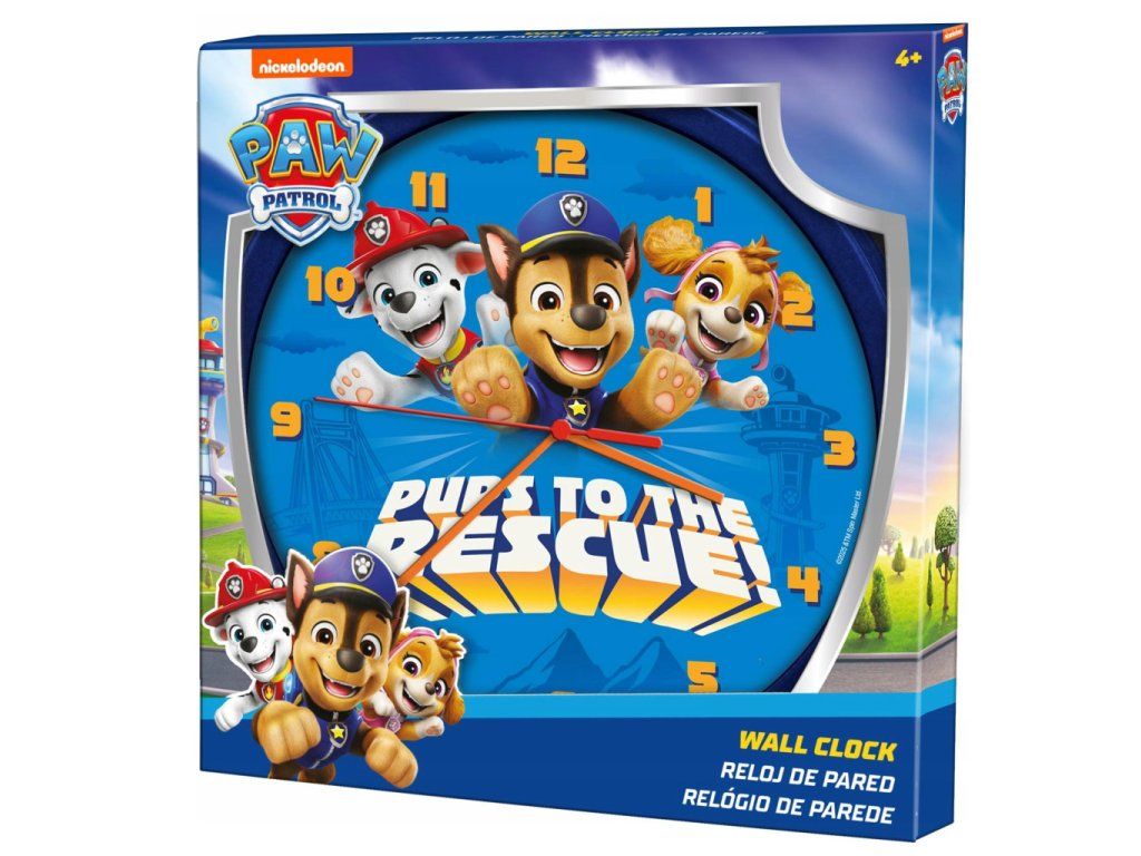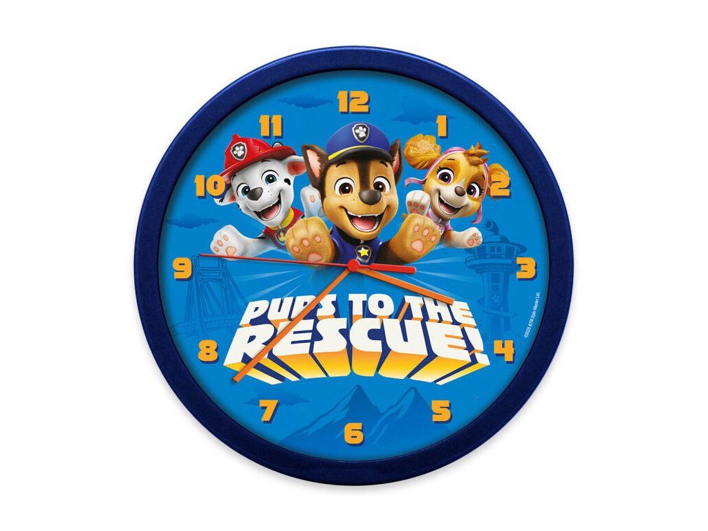 Ciferník zdobí oblíbení hrdinové Chase, Marshall a Sky v akci. Hodiny mají jasně čitelná žlutá čísla na modrém podkladu, což dětem usnadňuje učení času. Na zadní straně je připraven otvor pro snadné zavěšení na háček či hřebík.