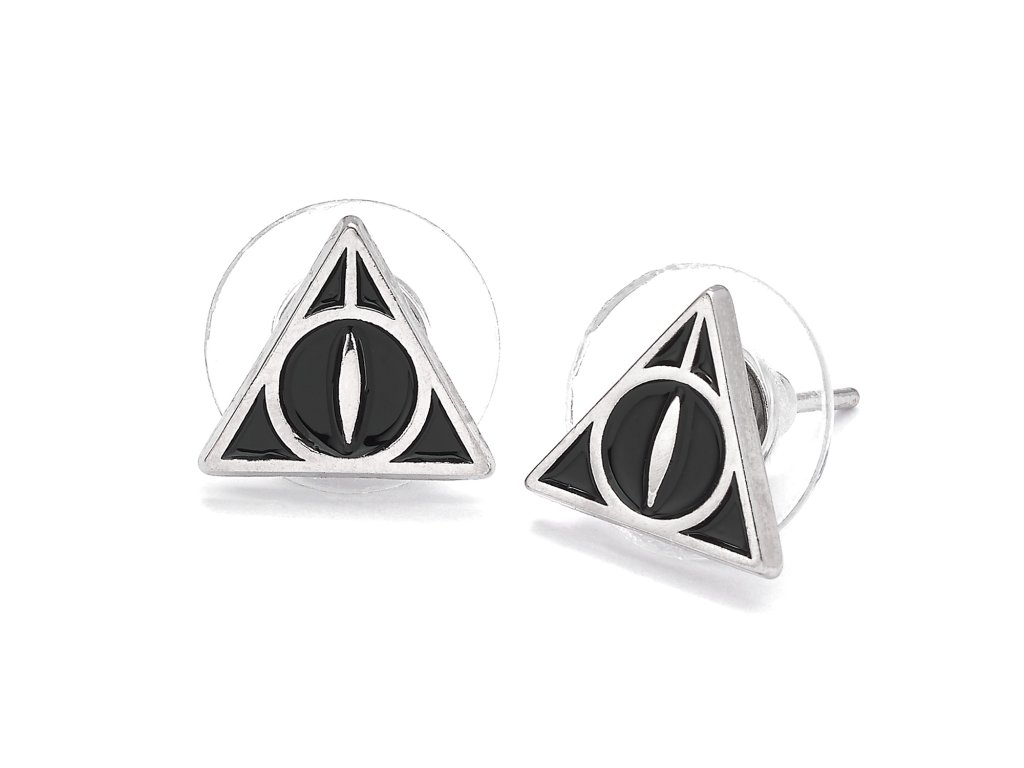 Postříbřené náušnice ve stylu symbolu Relikvií smrti. Potěší každou menší i větší fanynku Harryho Pottera.