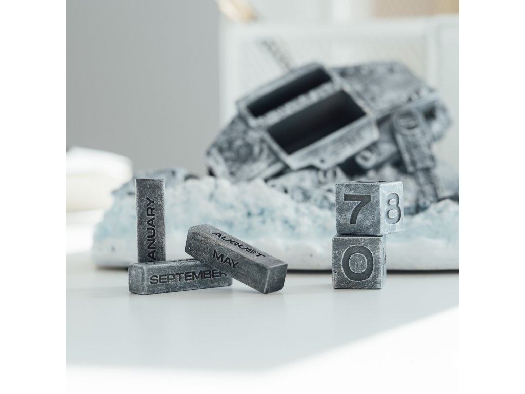 Nekonečný 3D kalendář vyrobený z pryskyřice, ručně malovaný. Obsahuje 5 bloků s dny a měsíci, které lze zaměňovat, kombinovat a konfigurovat tak všechna možná data stejného roku. Rozměry: 17 x 17,7 x 9 cm.Buďte první, kdo napíše příspěvek k této položce.