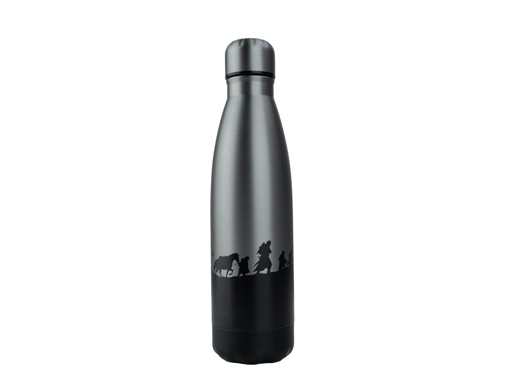 Elegantní nerezová láhev ve stříbrném provedení s motivem kráčejícího Společenstva prstenu z prvního dílu Pána prstenů. Vyrobena z odolné nerezové oceli, ideální pro studené i teplé nápoje. Stylový doplněk pro každodenní použití i jako dárek pro fanoušky Středozemě.