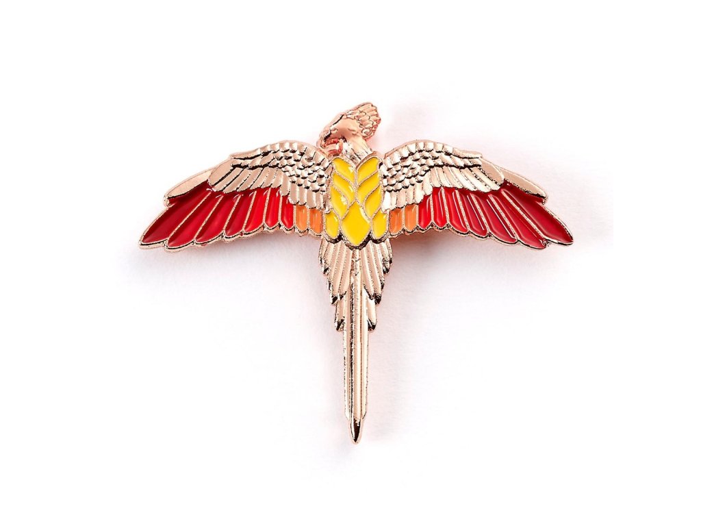Fénix je nejzvláštnější z ptáků a kdysi byl mazlíčkem Albuse Brumbála. Říká se, že dvě jeho ocasní pera jsou obsažena v hůlkách Harryho a Voldemorta! Fénixův odznak je vyrobený ze slitiny, která je pozlacena růžovým zlatem s barevnými detaily, takže zazáří všude, kde se ho rozhodnete připnout!