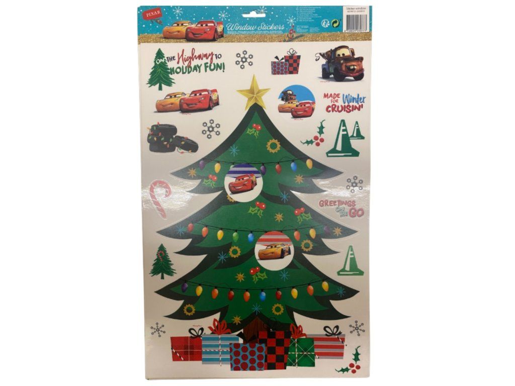 Okenní fólie stromeček Auta je dekorativní vánoční okenní fólie s motivem stromečku a aut (Cars) o rozměru 48 × 29 cm – ideální pro sezónní výzdobu oken, výloh nebo jiných skleněných ploch.