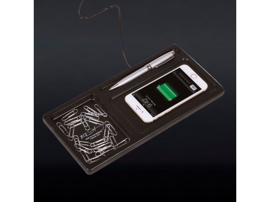 Udrží váš pracovní prostor uklizený a telefon vždy nabitý. Tento praktický doplněk do vaší kanceláře obsahuje držák na pero a přihrádku na drobnosti, jako jsou kancelářské sponky například. Navíc můžete bezdrátově nabíjet svůj chytrý telefon.