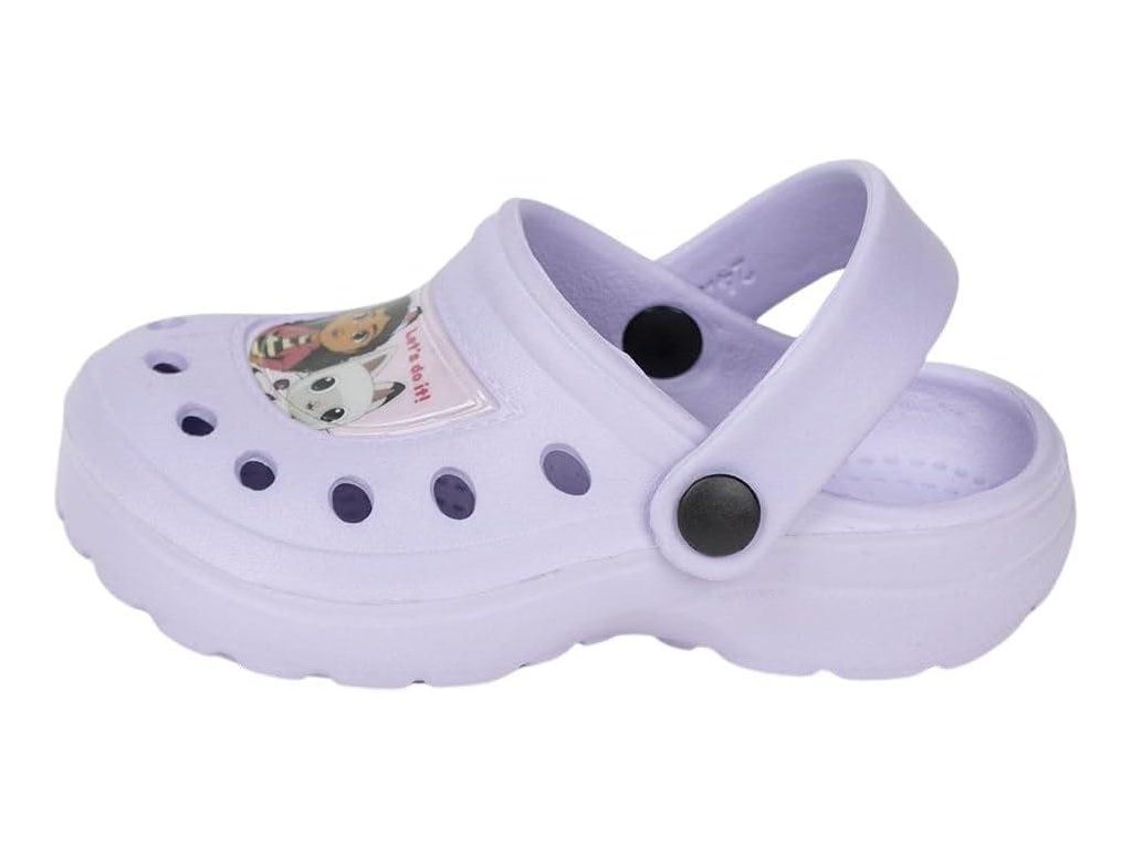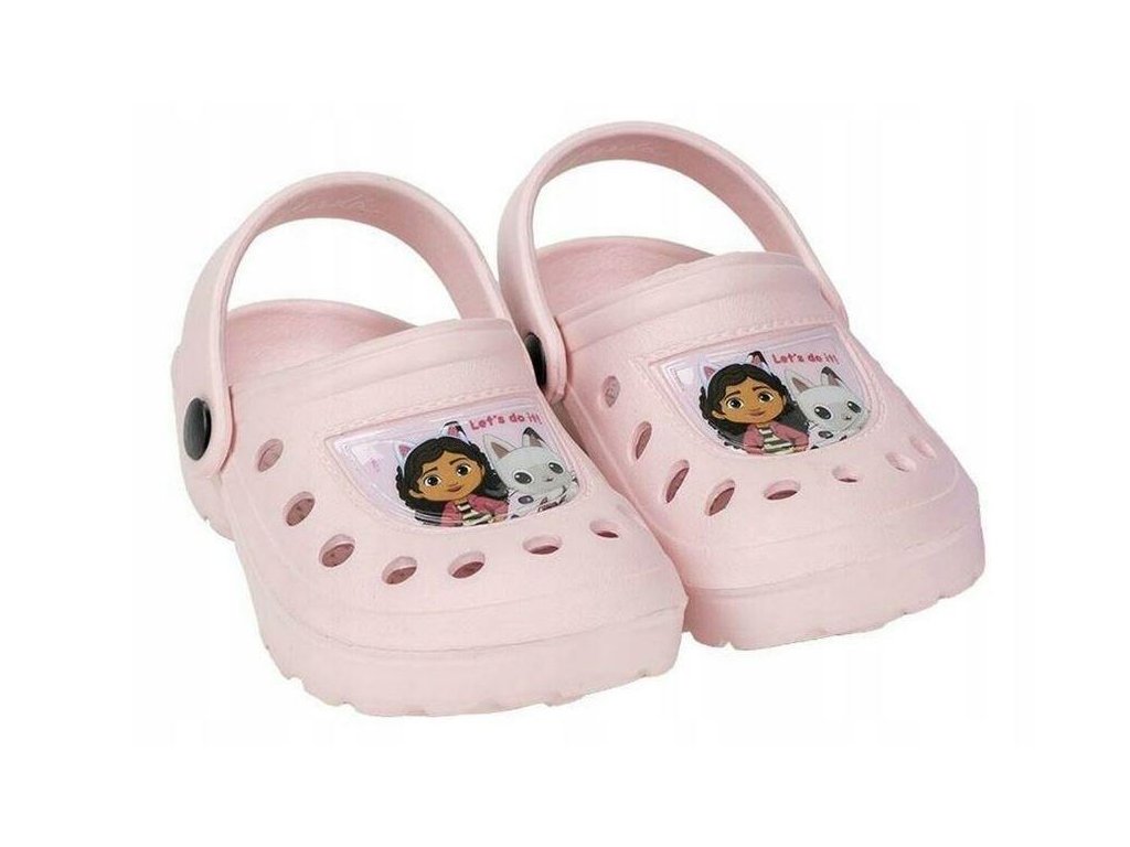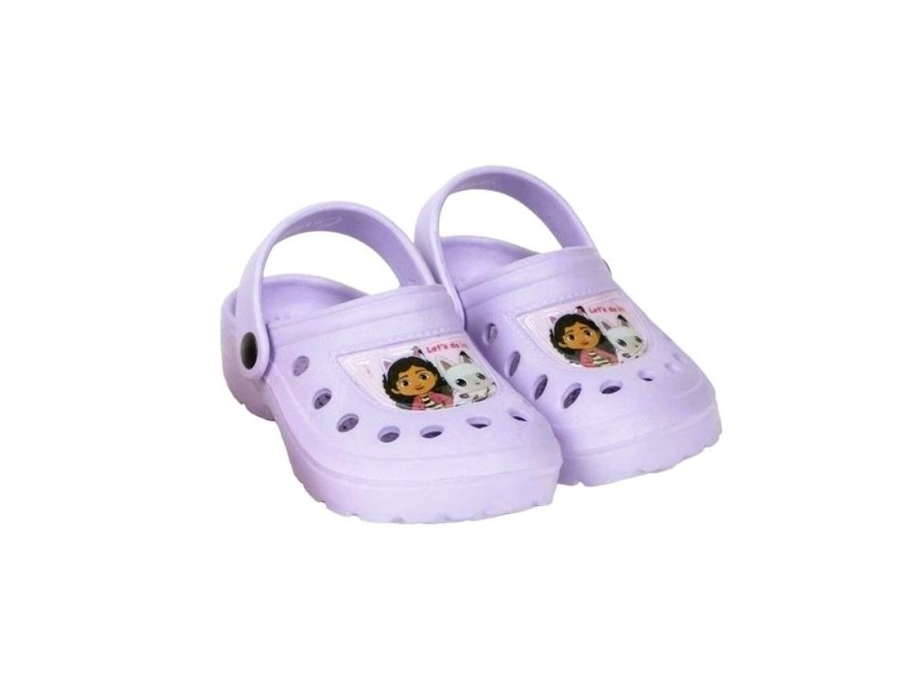 Pohodlné dětské nazouváky s páskem přes patu a motivem Gábi a kočičky. Ideální na léto, doma i ven. Lehký, prodyšný materiál.