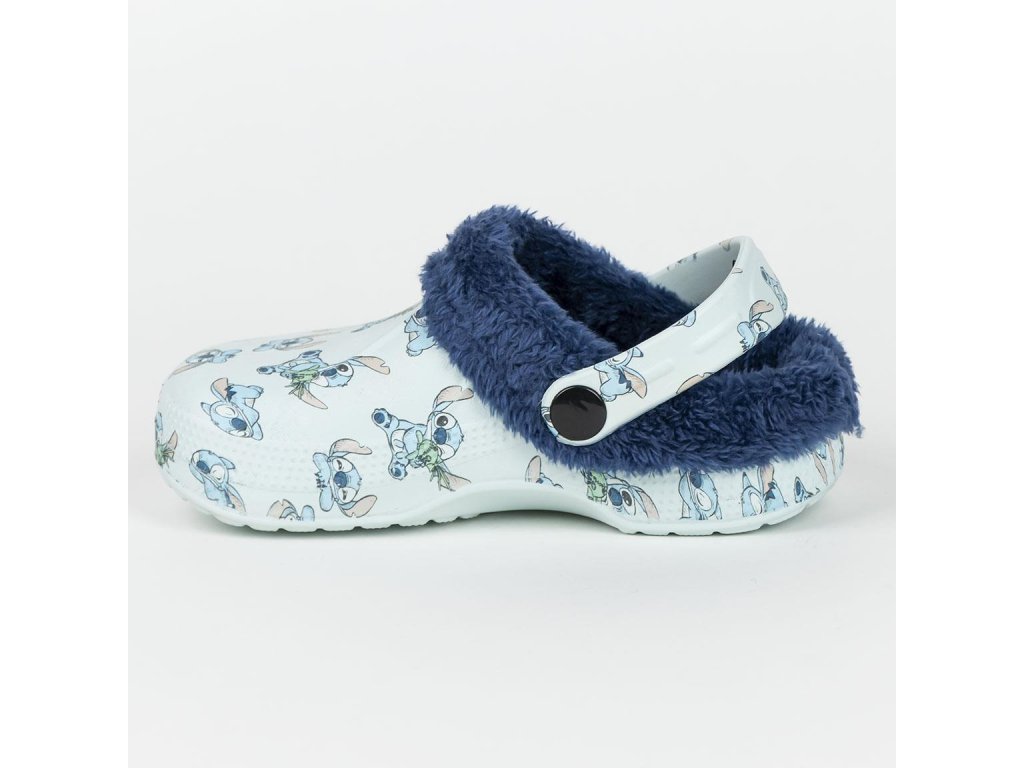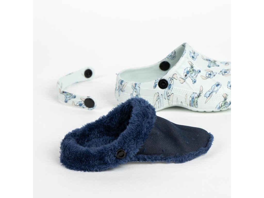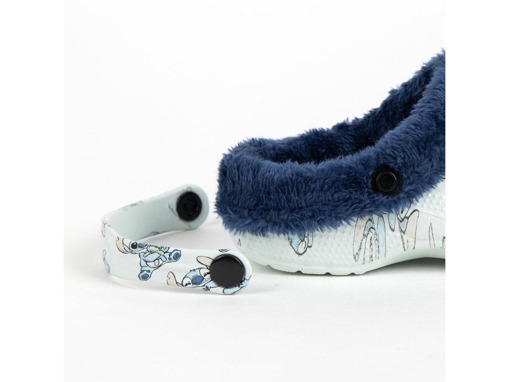 Pantofle gumové s páskem - zateplené světle modré, Stitch