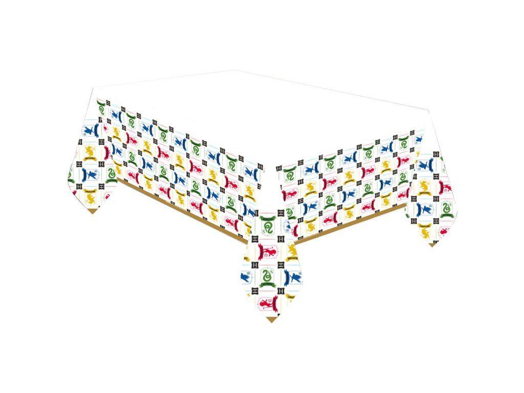 Papírový ubrus s tematickým potiskem, rozměr 120 x 180 cm. Je ideální pro párty s tématikou Harryho Pottera. Po stranách jsou vytištěny erby čtyř bradavických kolejí v jejich příslušných barvách.Doplňkové parametry