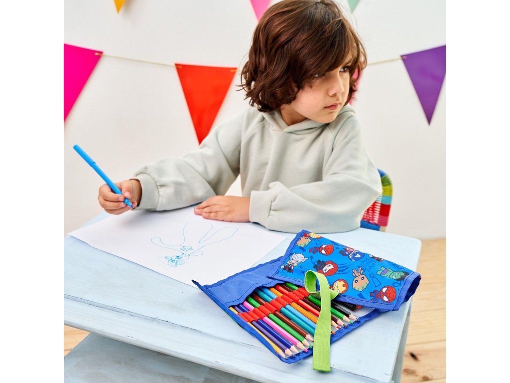 Představujeme pastelky v rozbalovacím pouzdře s motivem Kapitána Ameriky. Toto praktické pouzdro je ideální pro každého fanouška superhrdinů, který chce mít své kreslicí potřeby vždy po ruce.
