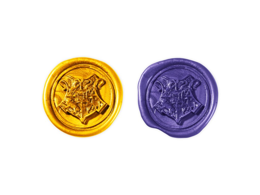 Stylové pečetidlo se znakem školy čar a kouzel v Bradavicích z filmové a knižní ságy Harry Potter.