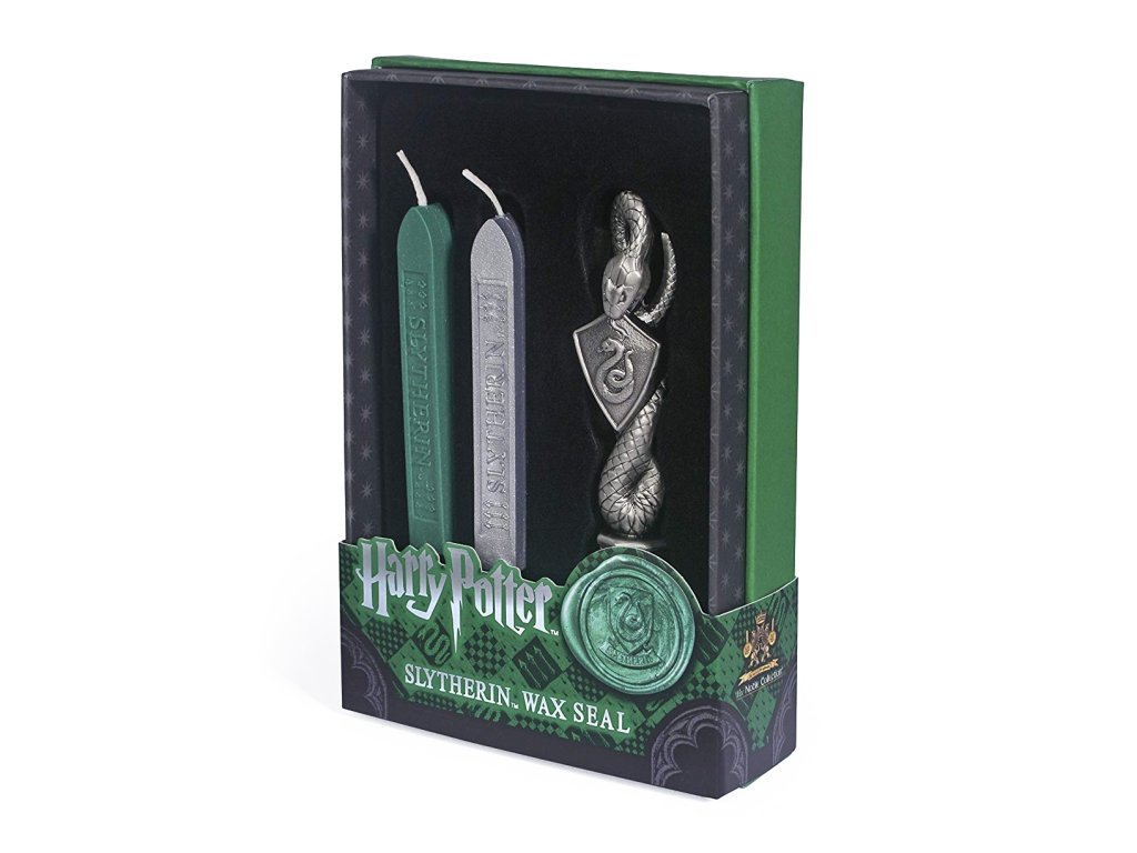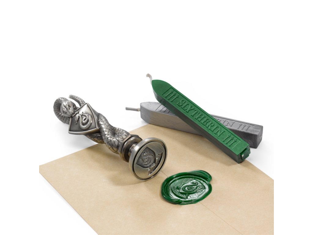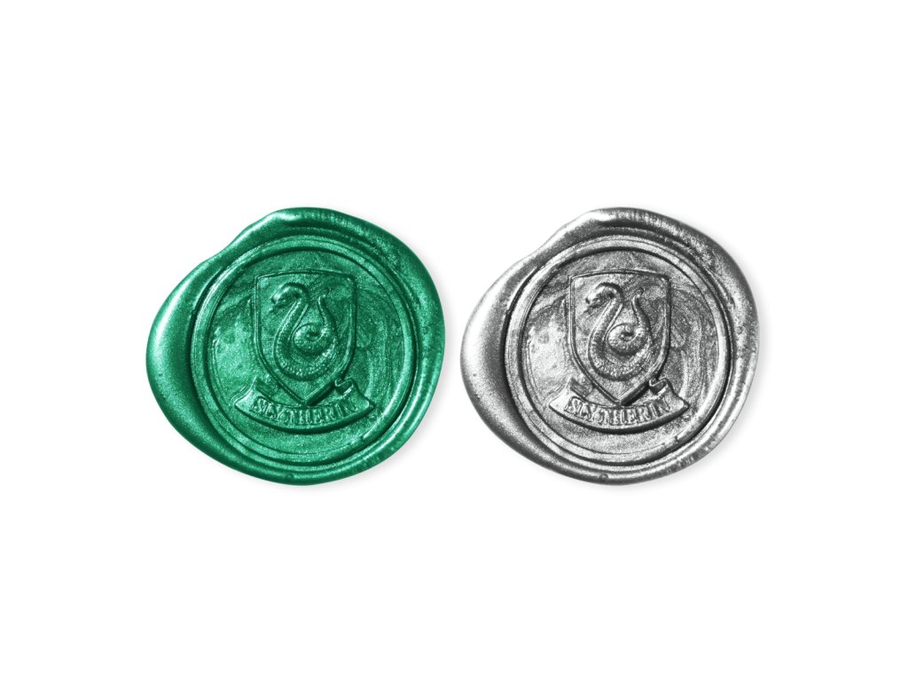 Stylové pečetidlo se zmijozelským hadem a znakem koleje Zmijozel ve škole čar a kouzel v Bradavicích z filmové a knižní ságy Harry Potter.