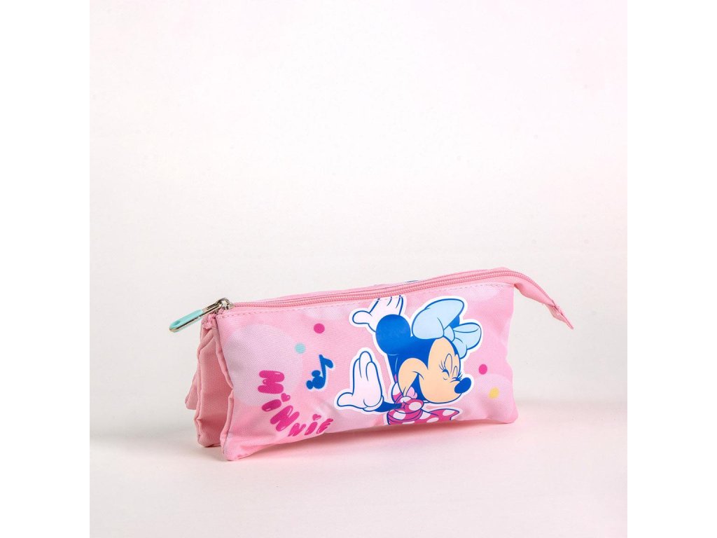 Penál se třemi kapsami růžový, Minnie