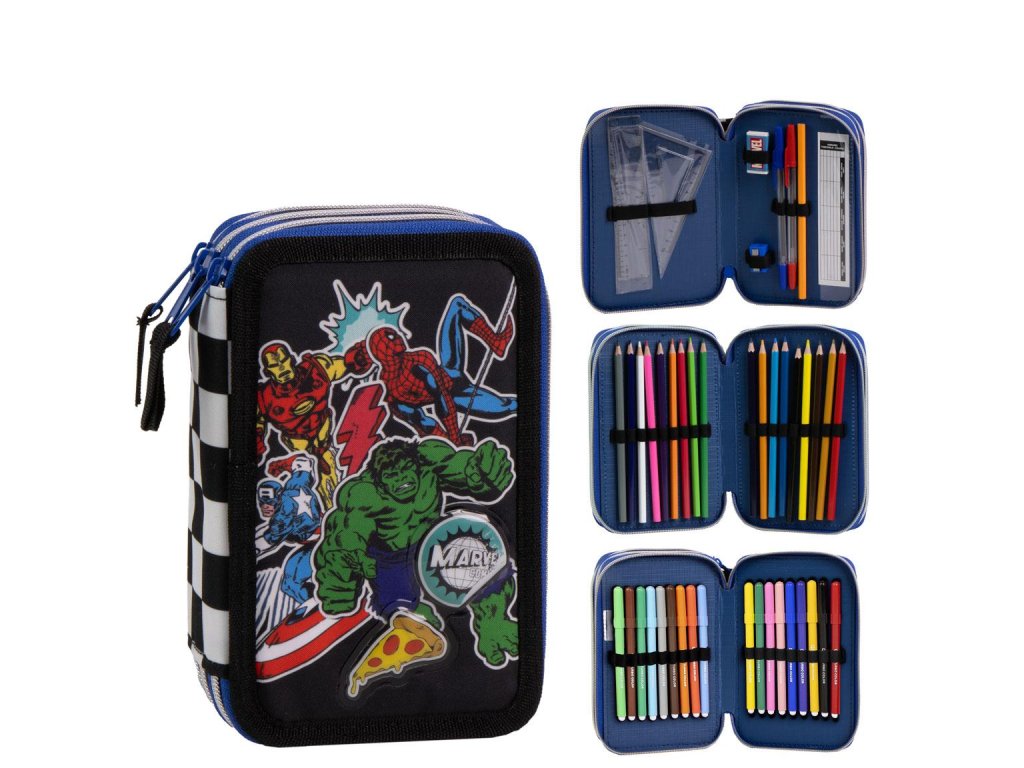 Penál třípatrový vybavený černý, Avengers