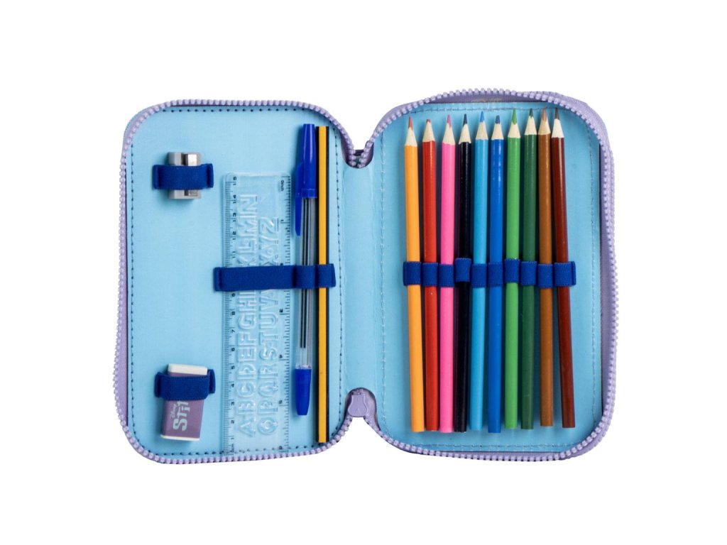 Modrý vybavený penál s motivem Stitche je ideální pro malé fanoušky Stitche. Obsahuje kompletní školní vybavení, takže všechny pomůcky jsou vždy po ruce. Veselý design dodá každému školnímu dni hravý a akční nádech.Doplňkové parametry