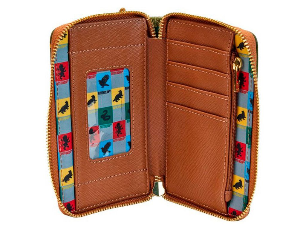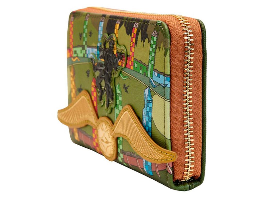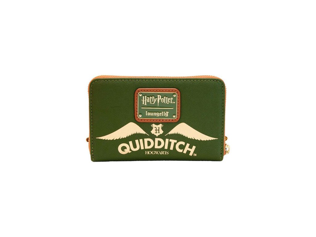 Luxusní peněženka Quidditch se zapínáním na zip, s lesklým kováním ve zlaté barvě. Zdobena velkou Zlatonkou a famfrpálovým hřištěm.