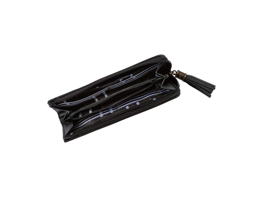 Klasický a sofistikovaný design s důrazem na detail, který potěší každého studenta bradavické školy čar a kouzel – ideální dárek pro každého fanouška. Prémiový design s erbem Bradavic hrdě vyobrazeným ve zlatě, károvaný vnitřek, kovové doplňky a zip s třásní. Dostatek místa na karty a bankovky, s bezpečnou zipovou kapsou uvnitř, která ochrání drobné předměty – i během létání na koštěti!Doplňkové parametry