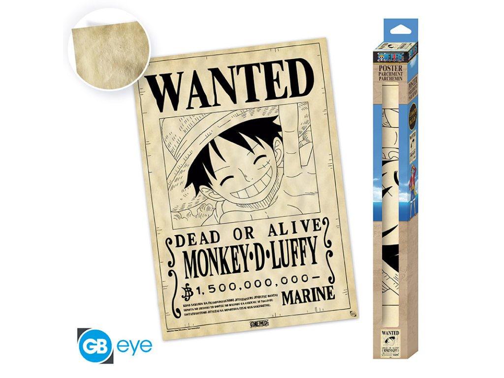 Pergamenový plakát Hledá se Luffy, One Piece