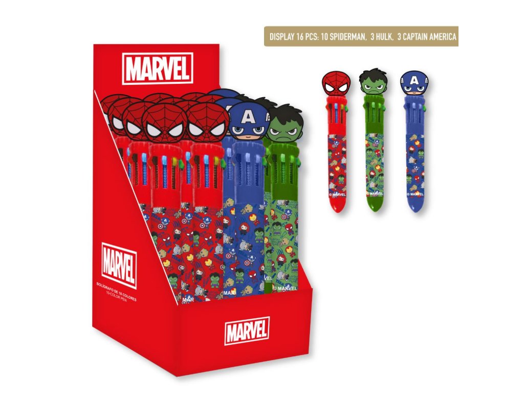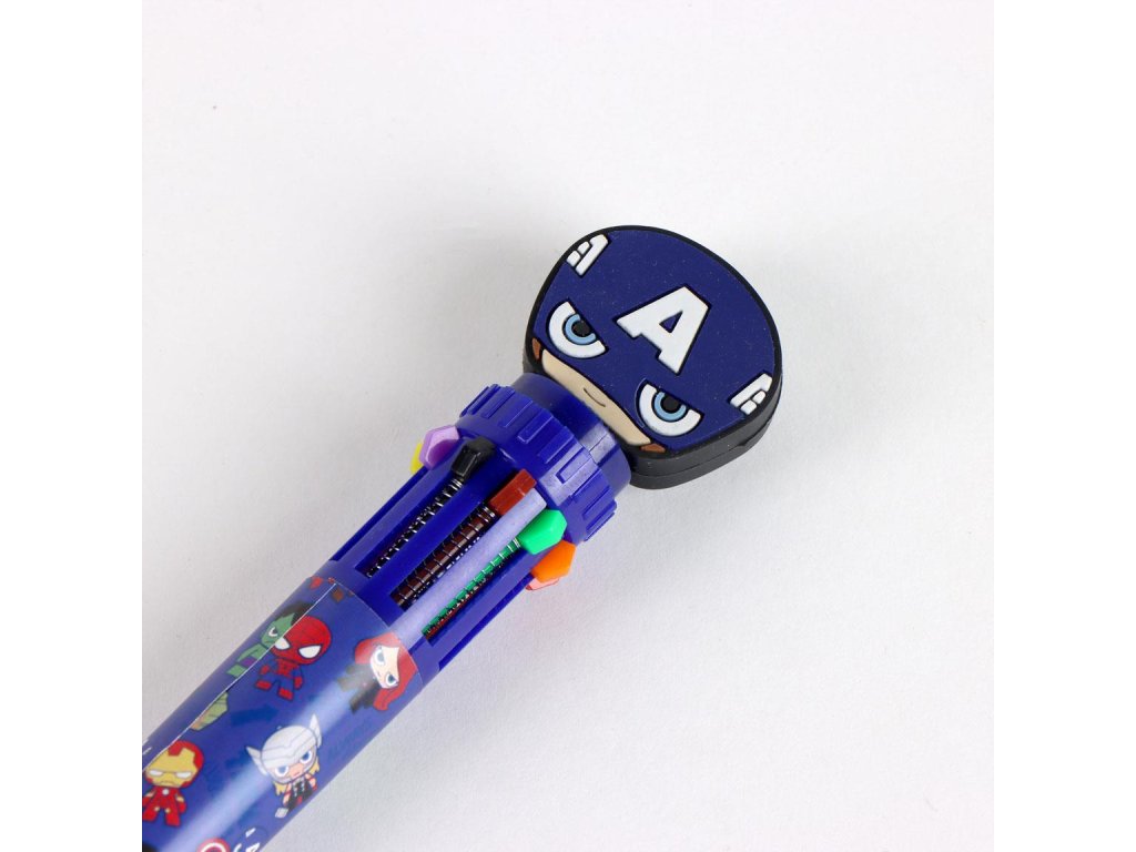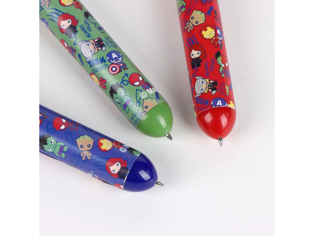 Vícebarevné pero s motivem Avengers spojuje funkčnost a atraktivní design inspirovaný oblíbenými superhrdiny. Umožňuje snadné přepínání mezi barvami a je vhodné pro psaní, kreslení i zdobení poznámek.Doplňkové parametry