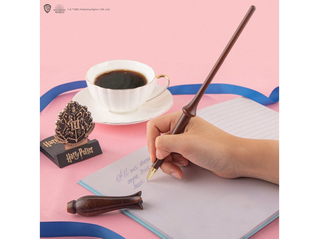 Pero připomínající hůlku není jen replikou z Harryho Pottera, ale také plnohodnotným perem vhodným pro běžné psaní. Toto pero je vybaveno vlastním stojánkem a záložkou označenou jménem majitele hůlky, která vám pomůže sledovat přečtené stránky.