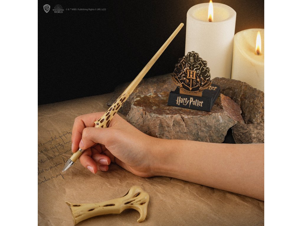 Pero připomínající hůlku není jen replikou z Harryho Pottera, ale také plnohodnotným perem vhodným pro běžné psaní. Toto pero je vybaveno vlastním stojánkem a záložkou označenou jménem majitele hůlky, která vám pomůže sledovat přečtené stránky.
