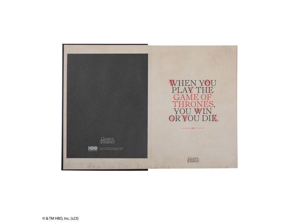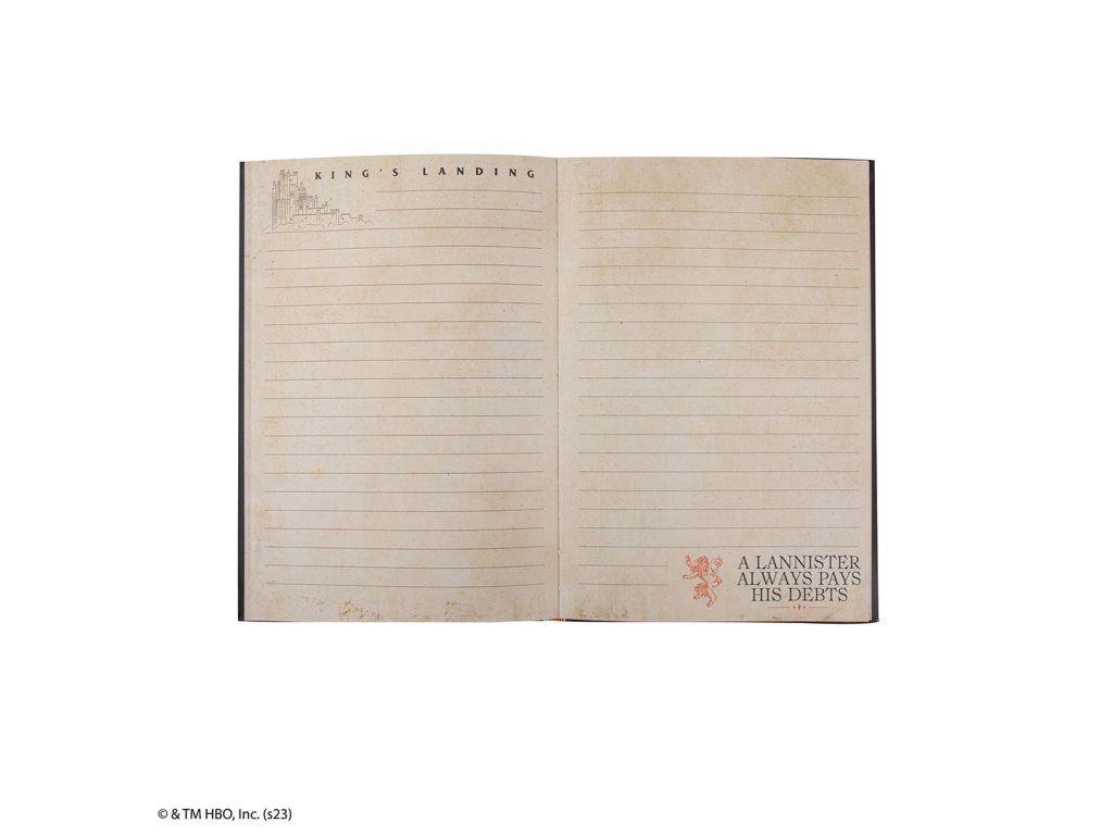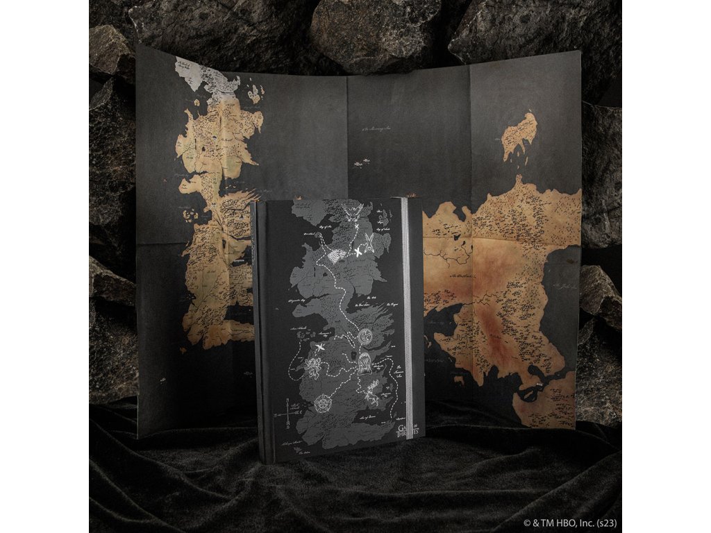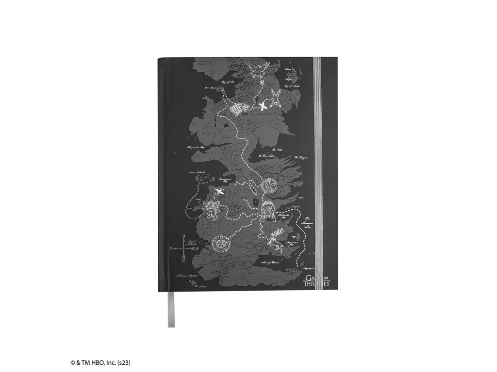 Deník Game of Thrones s pevnými deskami a linkovanými stránkami potěší fanoušky fantasy série. Součástí je mapa Západozemí, záložka a zavírání na gumičku, takže je praktický i stylový.Doplňkové parametry