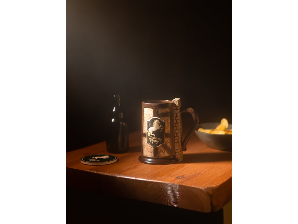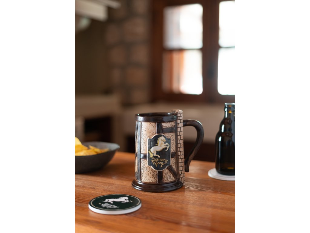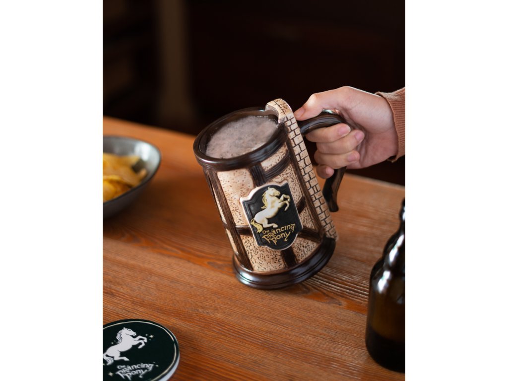 Autentický pivní hrnek U Skákavého poníka inspirovaný oblíbenou hospodou z filmové trilogie Pán prstenů. Hrnek je ručně malovaný a zdobený reliéfní výzdobou s logem hostince, který dobře znají fanoušci Středozemě.