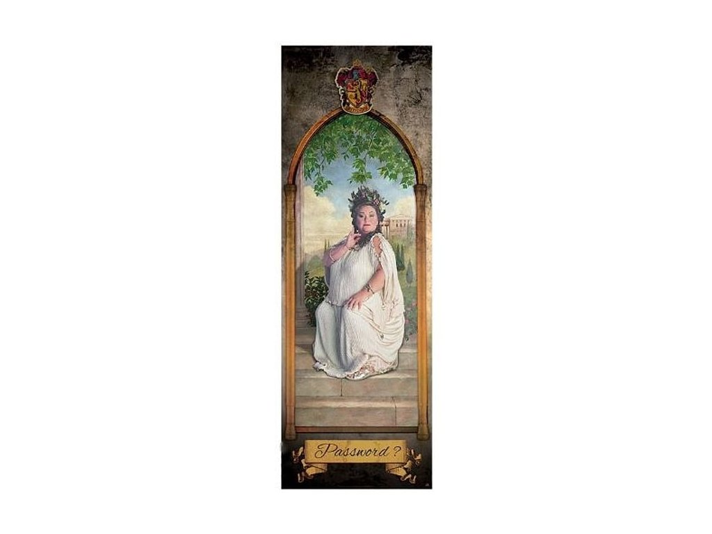 Plakát s grafikou Tlusté dámy z filmové ságy Harry Potter. Znáte tajné heslo pro vstup do nebelvírské věže?
