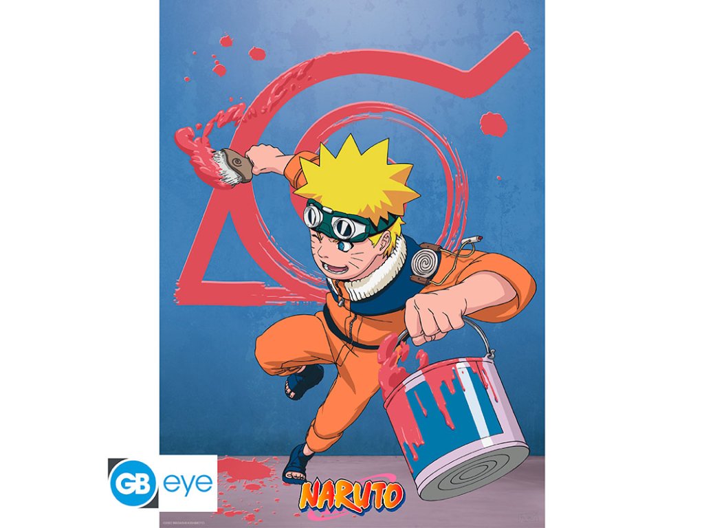 Naruto maluje znak Konoha! Naruto je možná darebák, který dělá všechny možné hlouposti, aby si ho všimli, ale hluboce miluje svou vesnici a svůj znak maluje na tento plakát .Buďte první, kdo napíše příspěvek k této položce.