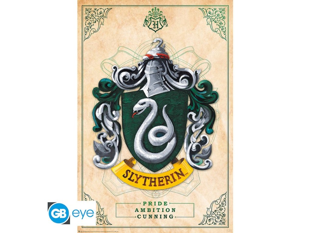 Plakát s grafikou bradavické koleje Zmijozel (Slytherin).