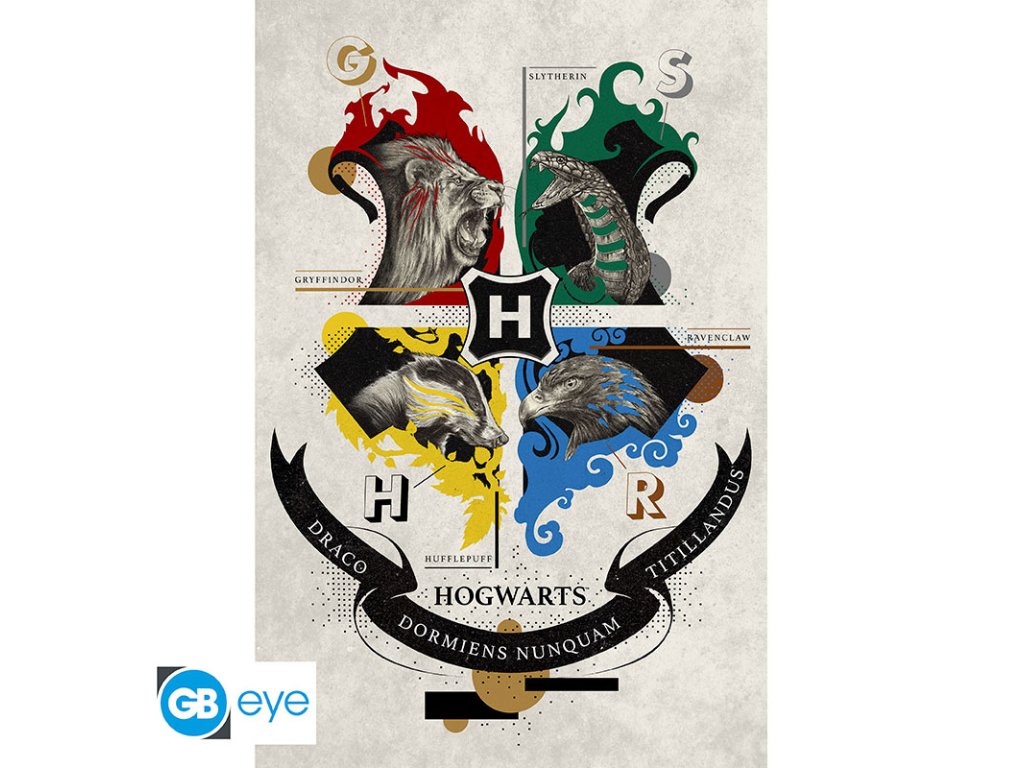 Na tomto nádherném plakátu s Harrym Potterem najdete zvířata představující čtyři koleje Bradavic.Doplňkové parametry