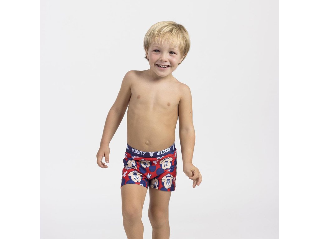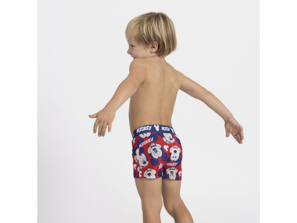 Červené chlapecké plavky ve stylu boxerek s motivem Mickey Mouse jsou vyrobeny z pružného a pohodlného materiálu, který zajišťuje volnost pohybu při plavání.Doplňkové parametry