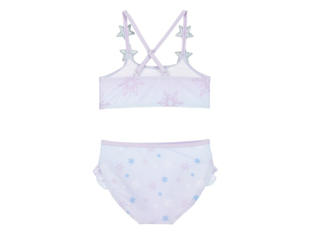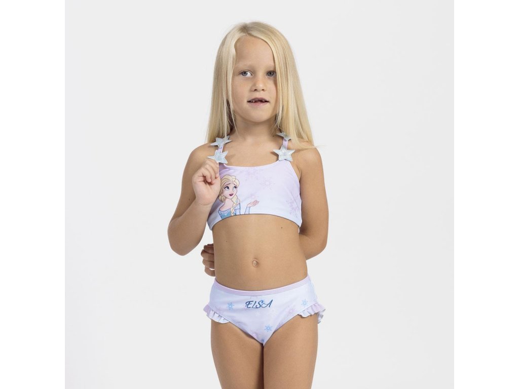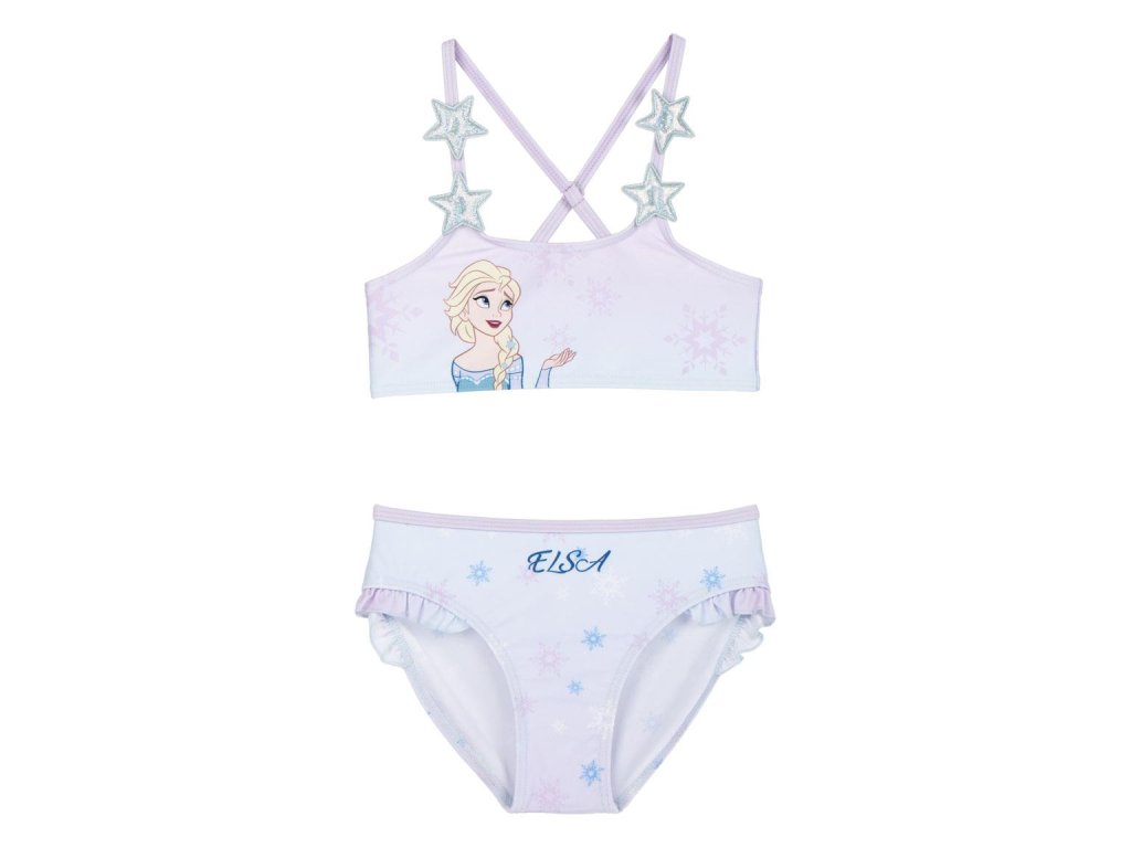 Světlemodré dvoudílné plavky s motivem Elsy z Frozen jsou vyrobeny z pružného a pohodlného materiálu vhodného pro koupání. Design s oblíbenou postavou dodává plavkám veselý vzhled.Doplňkové parametry