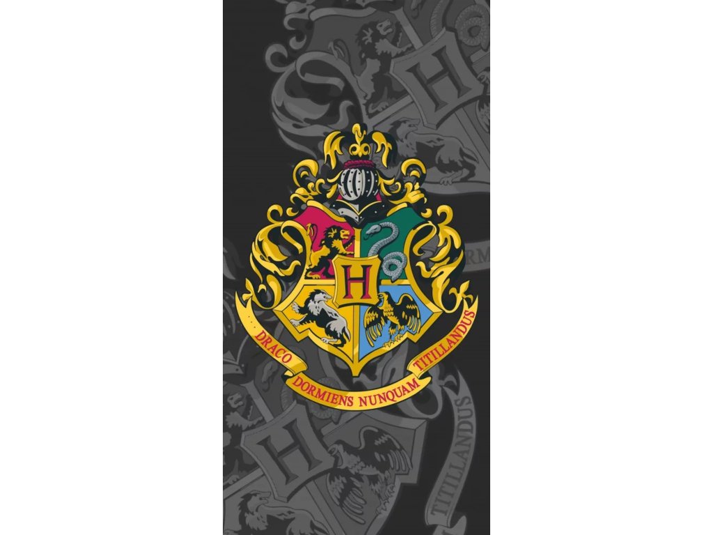 Froté plážová osuška Harry Potter. Zdobí ji velký erb bradavické školy čar a kouzel. Je ideální nejen doma do koupelny, ale hodí se i na pláž, nebo k bazénu.