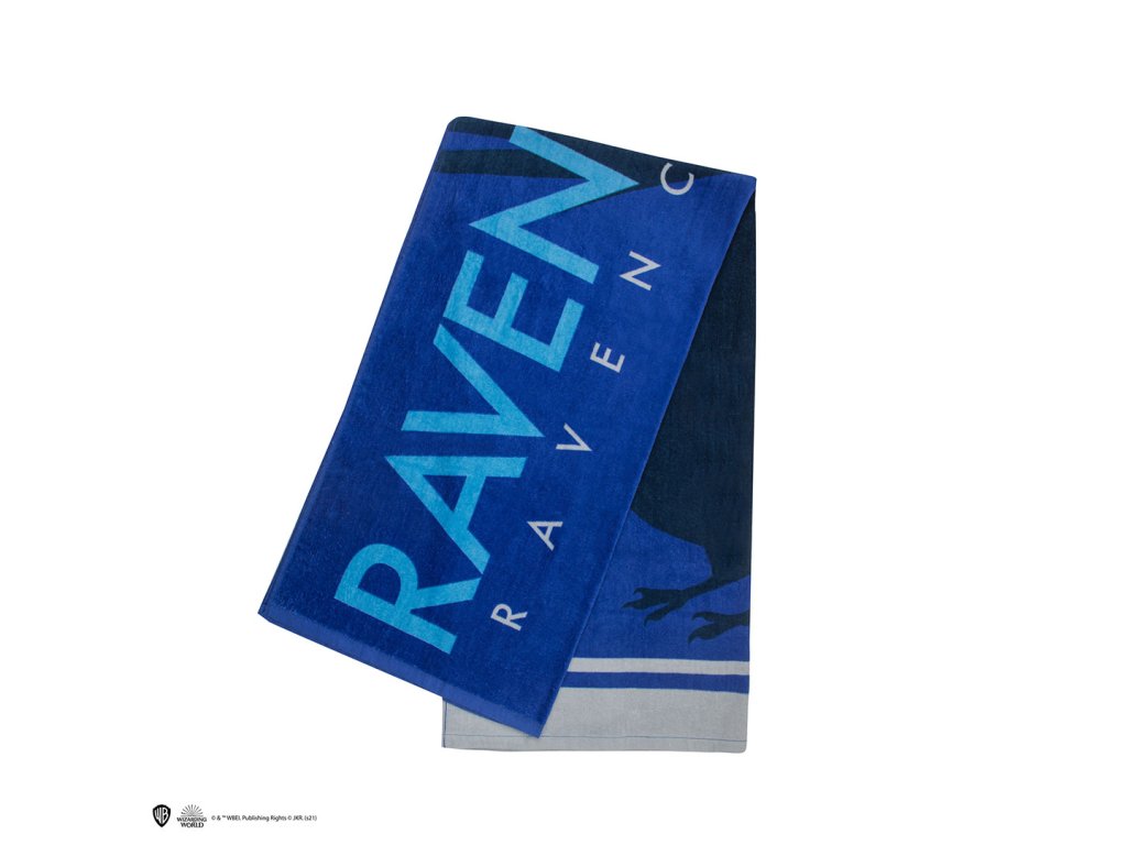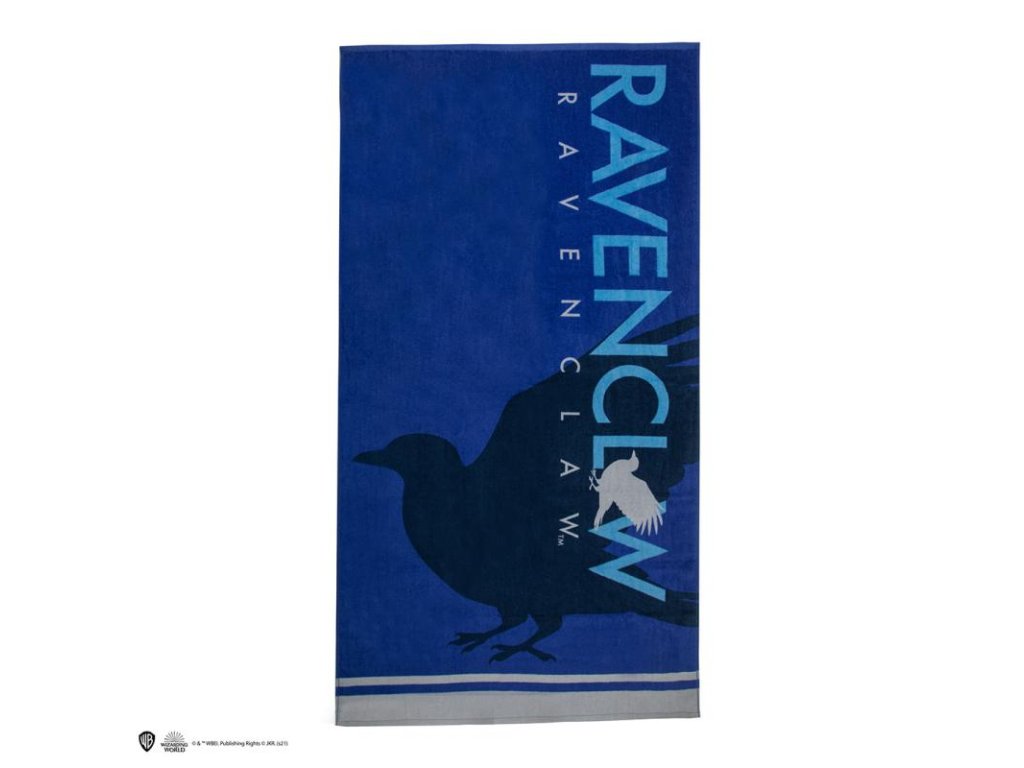 Kvalitní bavlněná plážová osuška s nápisem Ravenclaw a s havranem - typickým zvířetem pro havraspárskou kolej.