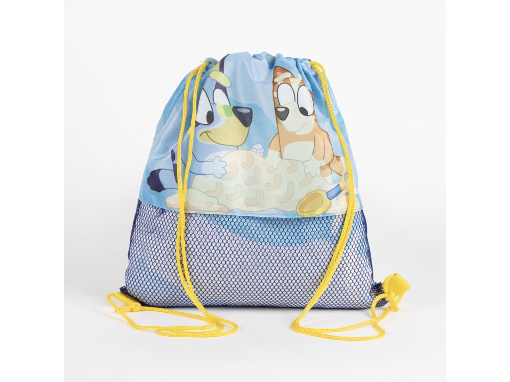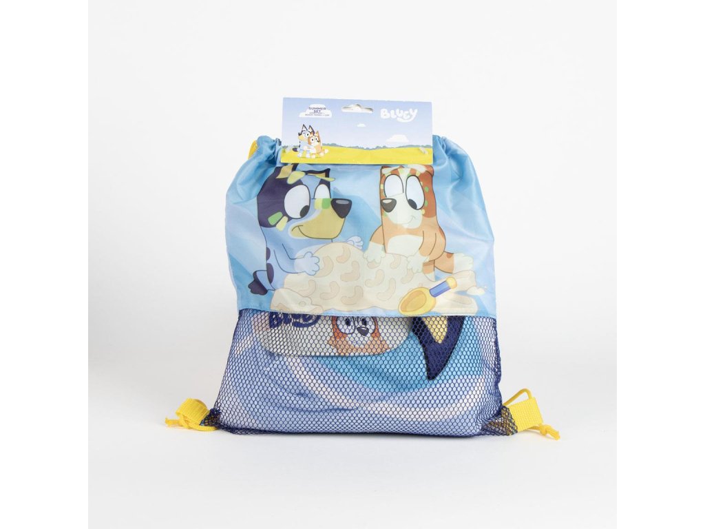 Roztomilý a praktický dětský plážový set s motivem Bluey a její sestřičky Bingo, který obsahuje plážovou kšiltovku, osuška a vak. Ideální k moři, k bazénu i na výlety – vyroben z materiálů, které zvládnou letní radovánky a zároveň potěší oblíbenými postavičkami.