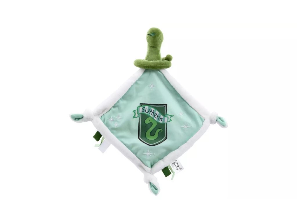 Ideální dáreček pro nejmenší kouzelnice a kouzelníky - mazlivý a měkoučký muchláček s motivem Zmijozelu, který si miminka zamilují. Plyšová hračka s hadem, erbem Zmijozelu a vyšívanými hvězdičkami má navíc měkké a svázané rohy pro smyslovou hru. Plyšák je vyrobený z nejměkčího plyše.