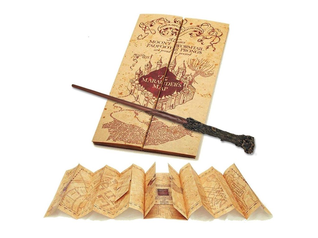 Pobertův plánek a kouzelnická hůlka Harryho Pottera