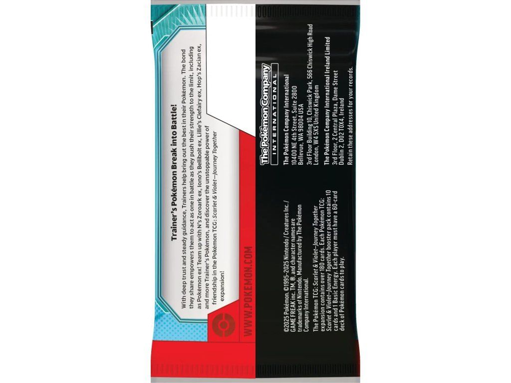 Pokémon TCG: Scarlet & Violet – Journey Together (SV09) booster je sběratelský balíček karet z populární karetní hry Pokémon Trading Card Game. Edice Journey Together rozšiřuje sérii Scarlet & Violet o nové Pokémony, trenéry i herní strategie, které mohou posílit váš herní balíček nebo obohatit sběratelskou kolekci. Každý booster přináší náhodný výběr karet, díky čemuž je rozbalování vždy napínavé a jedinečné.