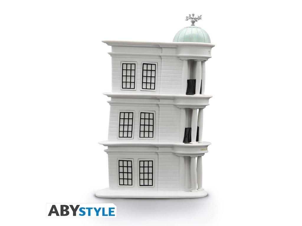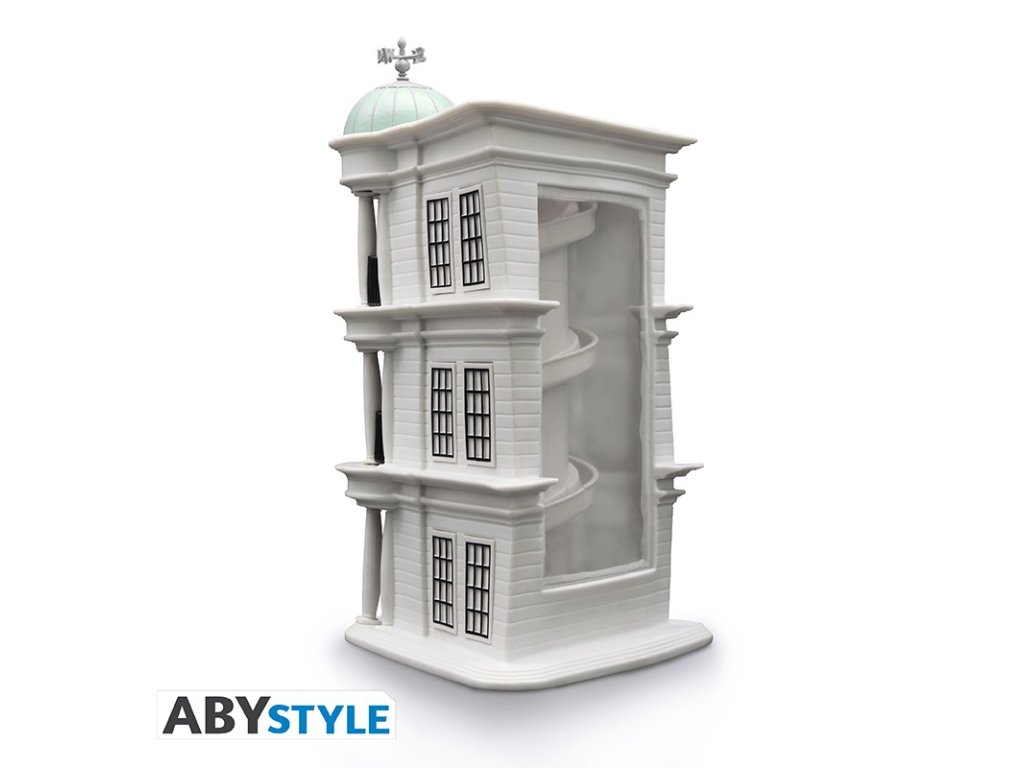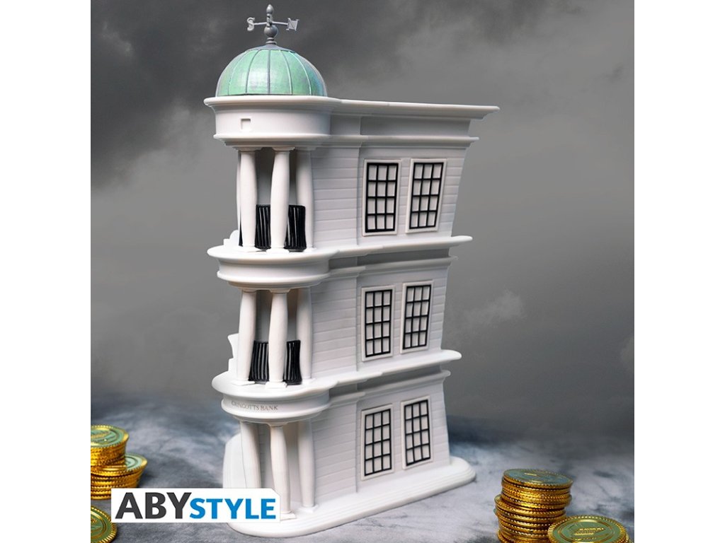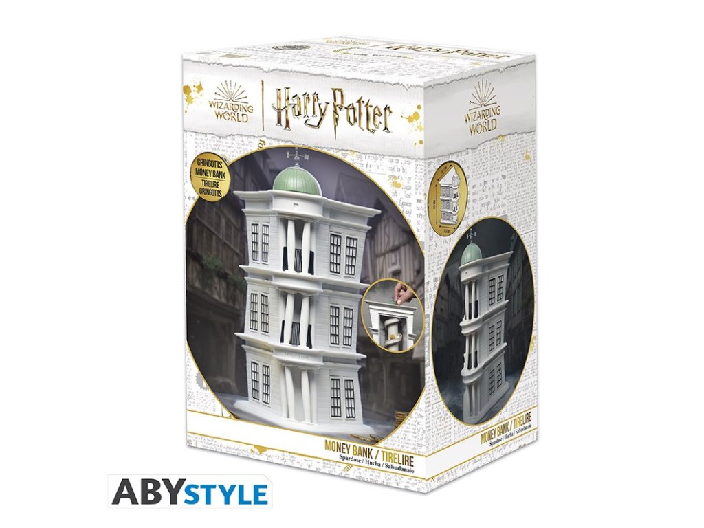 Pokladnička v podobě Gringottovy banky, kterou znáte z filmů o Harrym Potterovi. Sleduj jak mince sjede dolů po spirále v zadní části pokladničky. Tady budou vaše galeony, srpce a svrčky v bezpečí.