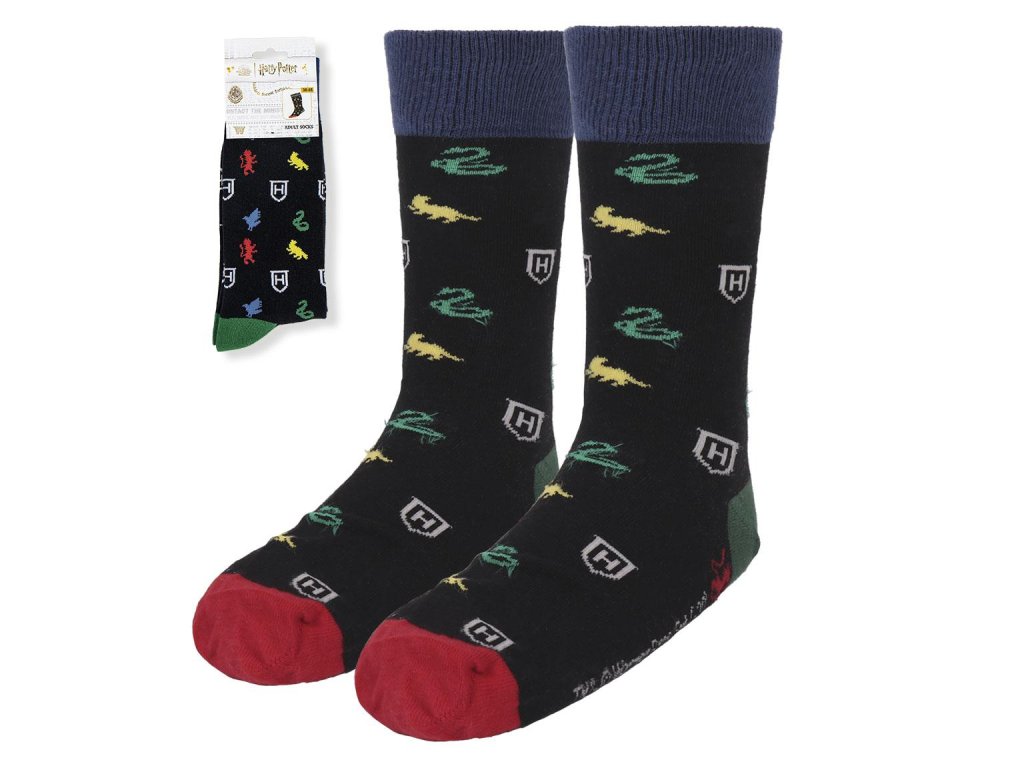 Stylové černé ponožky s ikonickými symboly ze světa Harryho Pottera jsou ideálním doplňkem pro každého fanouška kouzelné ságy. Nenápadný, ale rozpoznatelný design potěší milovníky Bradavic i kouzelnického světa a skvěle doplní každodenní outfit.Doplňkové parametry