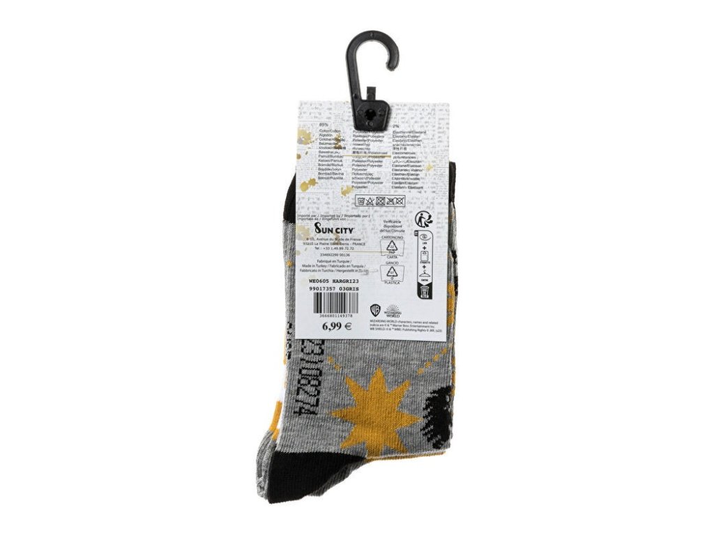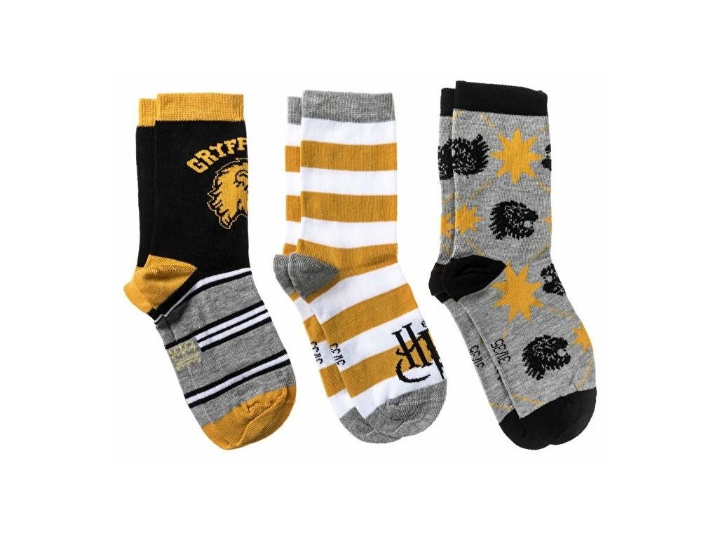 Ponožky dětské klasické, 3 ks, Nebelvír šedé/žluté, Harry Potter