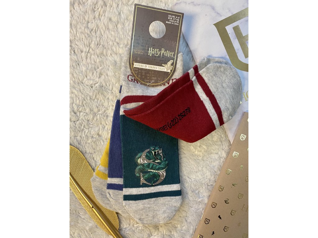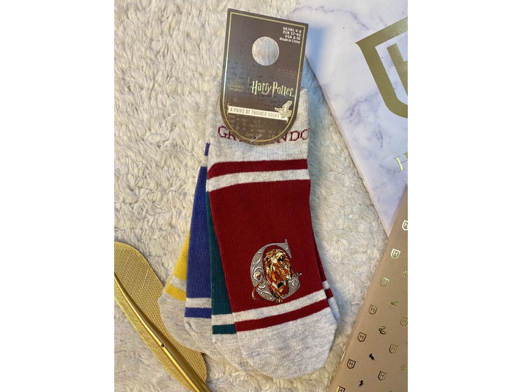 Ponožky kotníkové - šedé/barevné se znaky kolejí, Harry Potter