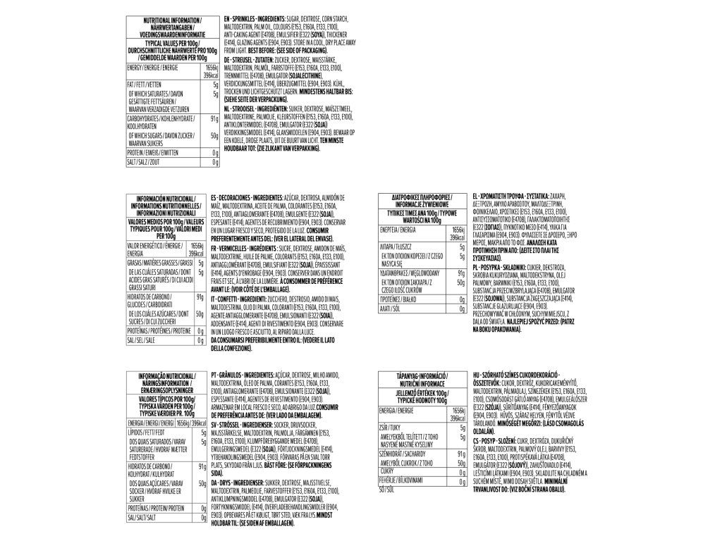 Tato kouzelná směs posypek na cukroví obsahuje různé tvary související s mrzimorskou kolejí. Legenda praví, že pocházejí přímo z Medového ráje! Ideální na polevy dortů, cupcaků, posypání zmrzliny a všech druhů pamlsků!