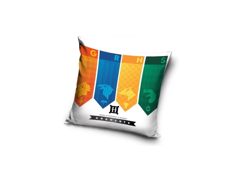 Dekorativní polštářky jsou nejen pohodlné a praktické, perfektně ale také doplňují interiér vašeho pokoje či obyváku. Tento polštářek potištěný barvami bradavických kolejí a nápisem Hogwarts se bude doma vyjímat!