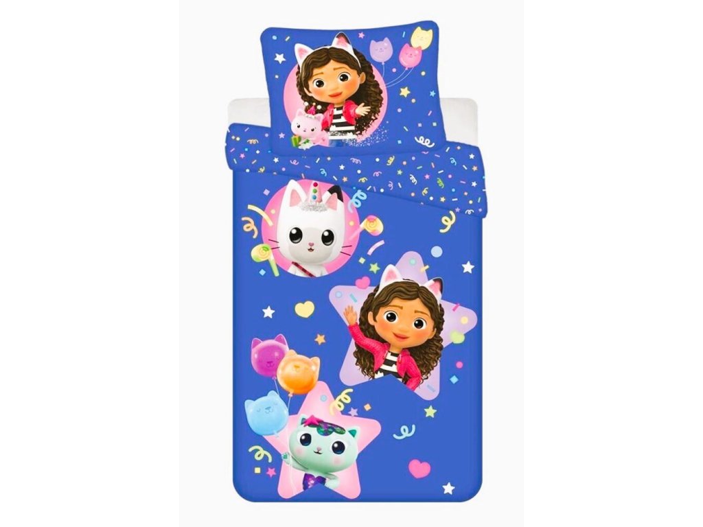Povlečení modré Gábinka s konfetami, Gábinin kouzelný domek