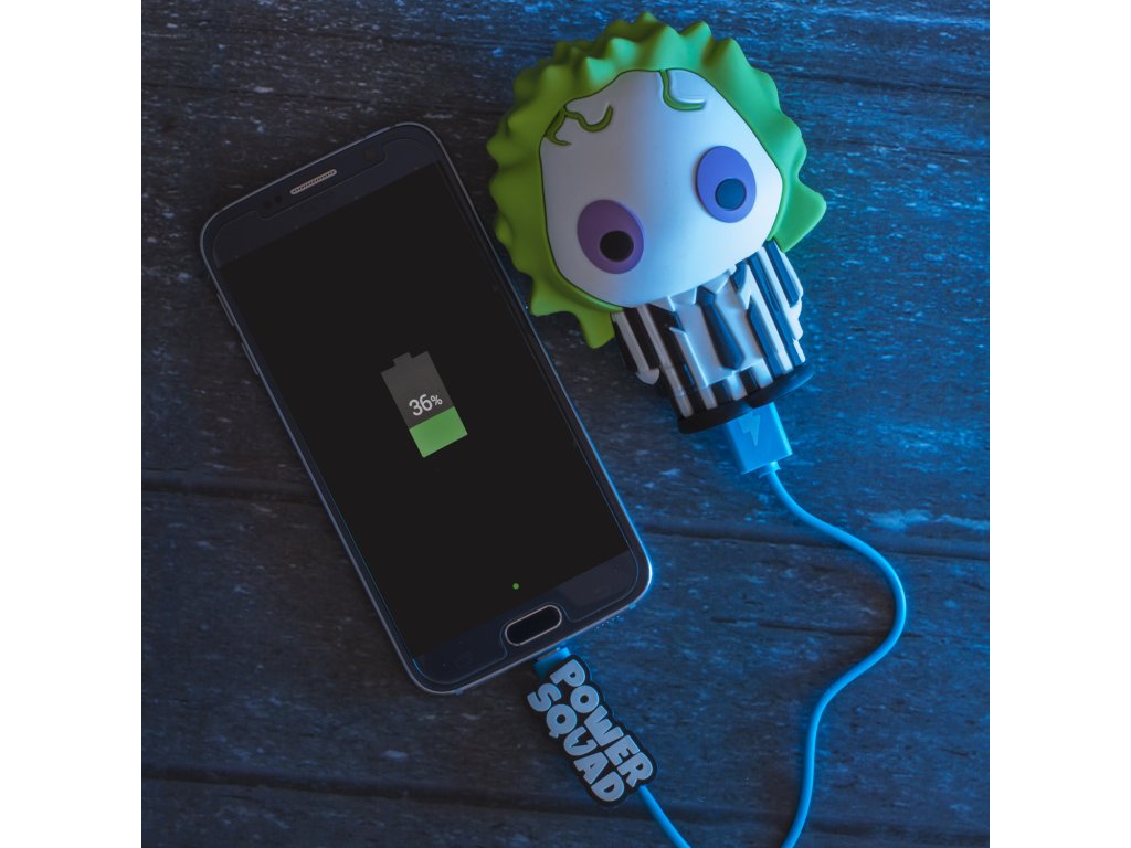 Je čas na show! S touto powerbankou Beetlejuice vám nikdy nedojde energie. Jednoduše připojte powerbanku Beetlejuice ke svému smartphonu a dobije se novou energií. Udělejte z Beetlejuice svého věrného společníka na cestách a mějte vždy dostatek energie pro svůj smartphone. Už není důvod se spokojit s nudnou powerbankou. Nabíjecí kabel je součástí balení. Obsah balení: 1x powerbanka Power Squad, 1x nabíjecí kabel (25 cm, micro USB, modrý). Kapacita: 2500 mAh. Lithium-iontová baterie (nevyměnitelná). Výstup: 5 V / 1 A, vstup: 5 V / 1 A. Doba nabíjení: 3-4 hodiny.