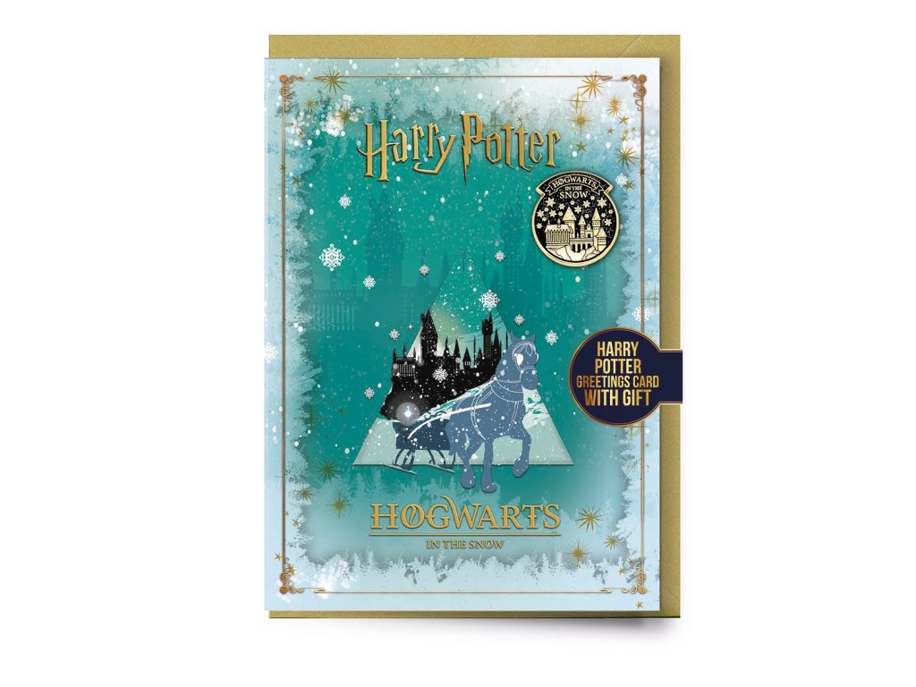 Přáníčko Hogwarts in the snow + odznáček, Harry Potter
