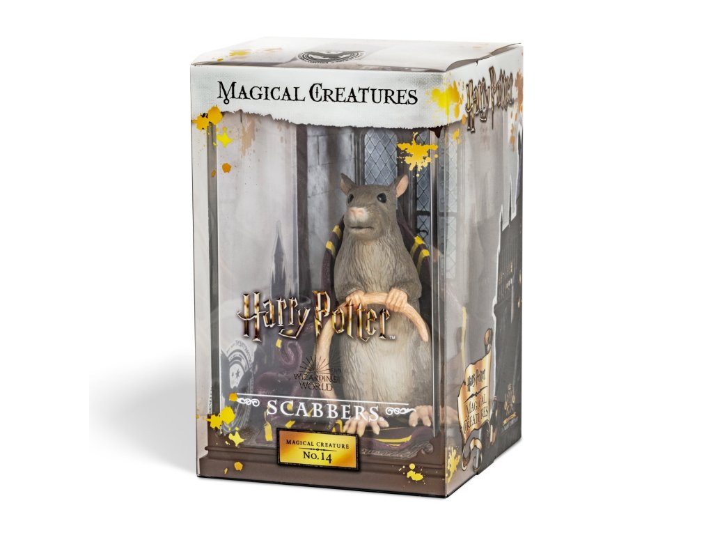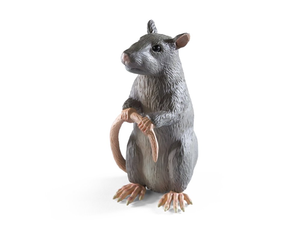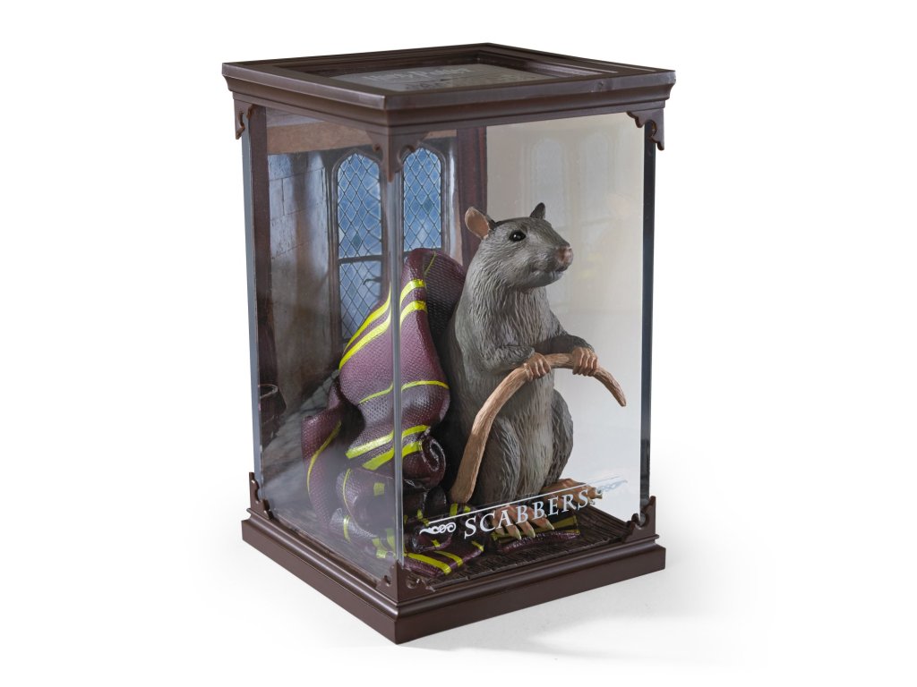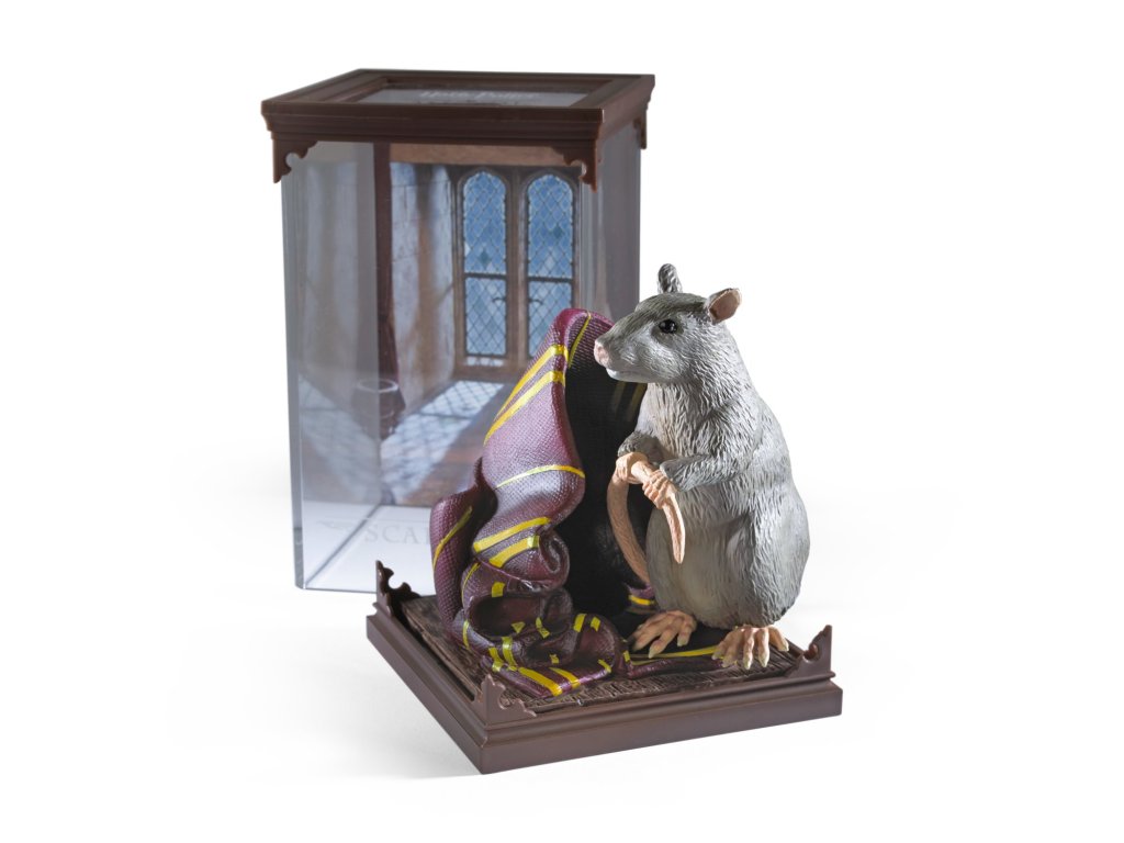 Sběratelská figurka v průhledné vitríně - krysa Prašivka. Je to mazlíček Rona Weasleyho, později odhalený Peter Pettigrew - podlý následovník Lorda Voldemorta.